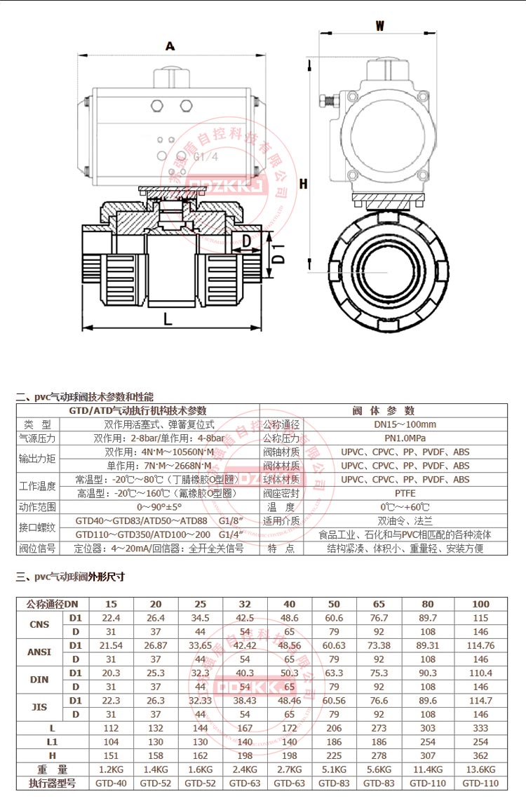 2、氣動UPVC球閥閥體具有優良的耐化學腐蝕性能,在由令端有FPM或EPDM "O"環,配合PTFE墊座之使用,能防止多數化學物質之腐蝕。